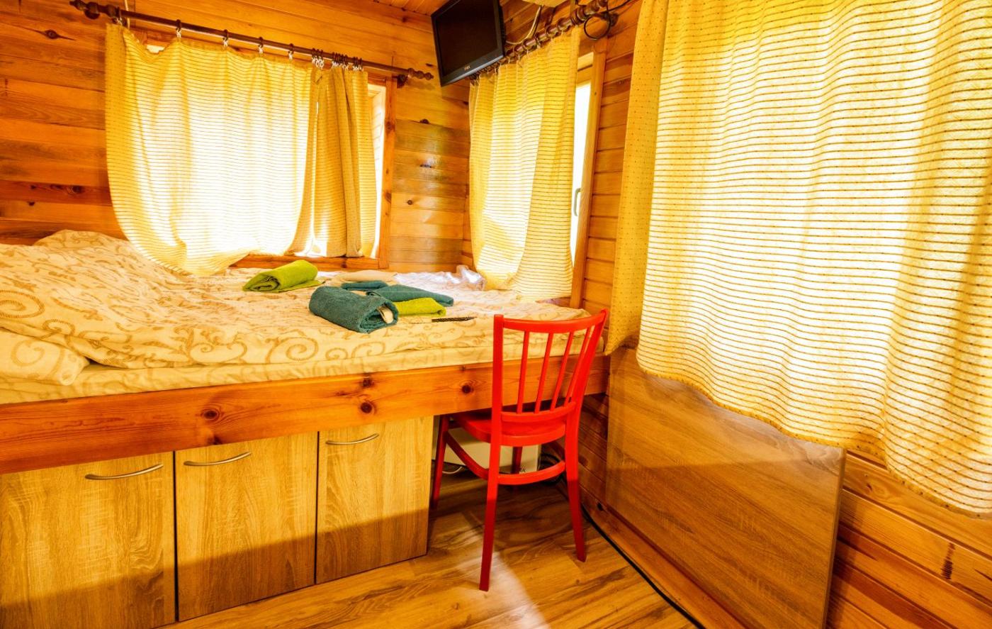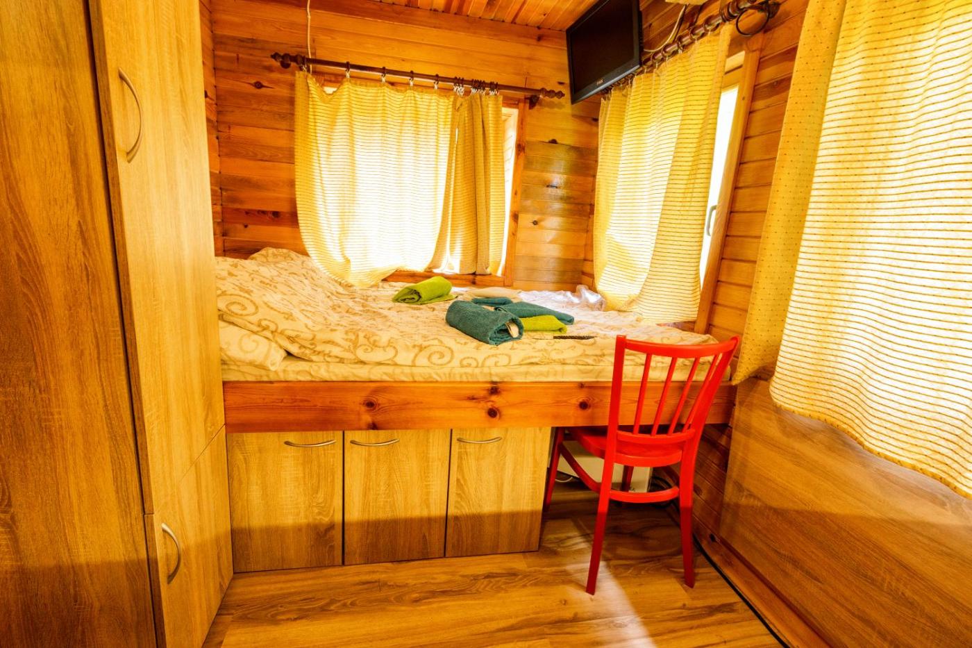 One-Bedroom Chalet. The chalet features 1 bedroom, 1 bathroom and a kitchen. The chalets kitchen is available for cooking and storing food. This chalet has a washing machine, heating, a flat-screen TV and garden views. The unit offers 1 bed.