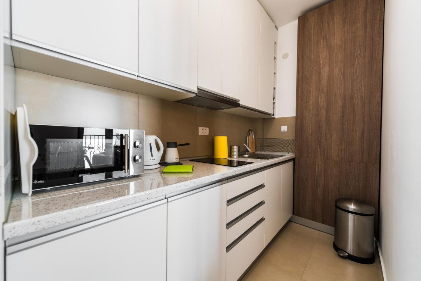 One-Bedroom Apartment. This apartment features 1 living room, 1 separate bedroom and 1 bathroom with a shower and a hairdryer. In the fully equipped kitchen, guests will find a stovetop, a refrigerator, kitchenware and a microwave. Boasting a terrace with lake views, this apartment also features a washing machine and a flat-screen TV with cable channels. The unit has 2 beds.